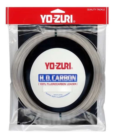 Yo-Zuri HD Fluorocarbon is a fluorocarbon leader that maximizes the advantages of fluorocarbon with a clear tint. Fluorocarbon is virtually invisible in the water until it gets nicked or scraped up. If this happens, that section of the leader actually lights up from the sunlight. The clear line helps reduce this problem keeping an angler?s presentation as natural as possible. Yo-Zuri HD Carbon has incredible abrasion resistance, ultimate invisibility, higher sensitivity, superior knot strength, and is a softer, suppler leader material than other fluorocarbons on the market.